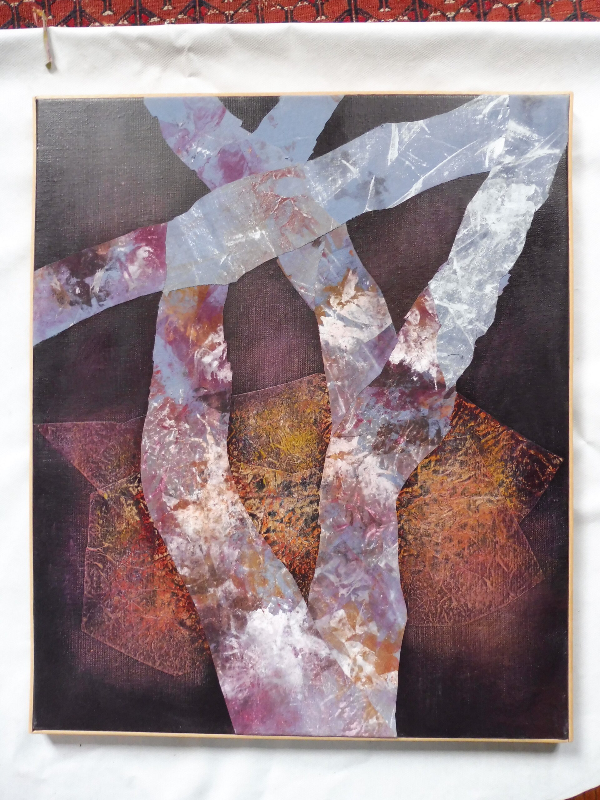 - Acrylique sur toile ou sur papier ou sur drap, pastel sec, marouflage sur toile montée sur châssis
